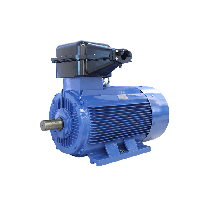 电动机采用新材料及新工艺,机座采用钢板焊接而成的箱式结构,重量轻、刚度好,定子采用外压装工艺,定子绕组采用F级绝缘,端部有牢靠的绑扎和固定,并浸F级环氧树脂绝缘漆,故定子具有良好的绝缘性能及防潮性能。电动机采用滚动轴承,线圈间及引出线与线圈间均有可靠的焊接,保证电动机可靠运行。电机一般采用单轴伸,也可以按照用户要求制成双轴伸。